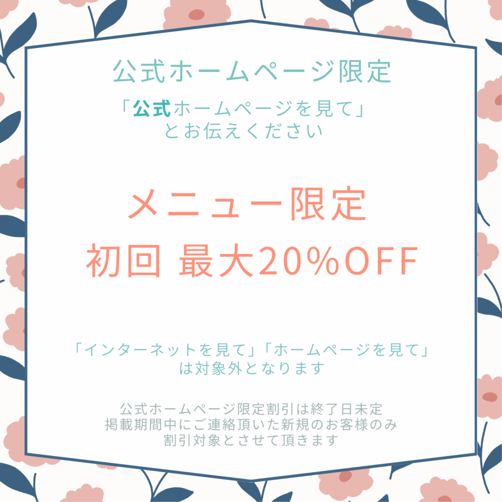下記メニューをご予約のお客様に限り、施術料が初回 10%~20%OFF